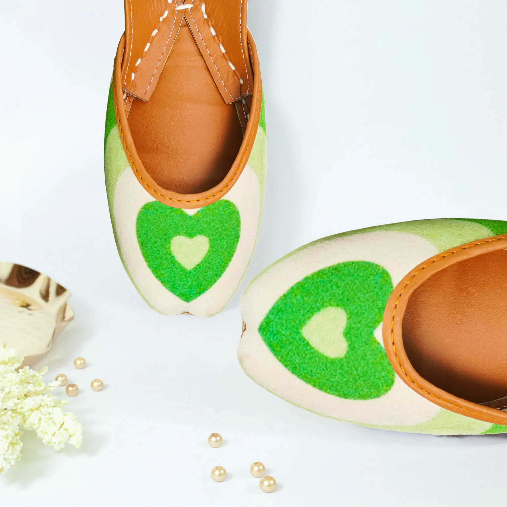 Step into effortless charm with the Green Heart Charm Khussa, a perfect fusion of tradition and modern elegance. Handcrafted with care, this pair features a refreshing green heart motif on a soft beige base, creating a playful yet graceful look. The natural leather lining and cushioned sole provide all-day comfort without compromising on style. Lightweight and versatile, these khussas are ideal for festive occasions, casual outings, or simply adding a splash of color to your everyday attire. A true must-have that combines cultural heritage with contemporary sophistication.