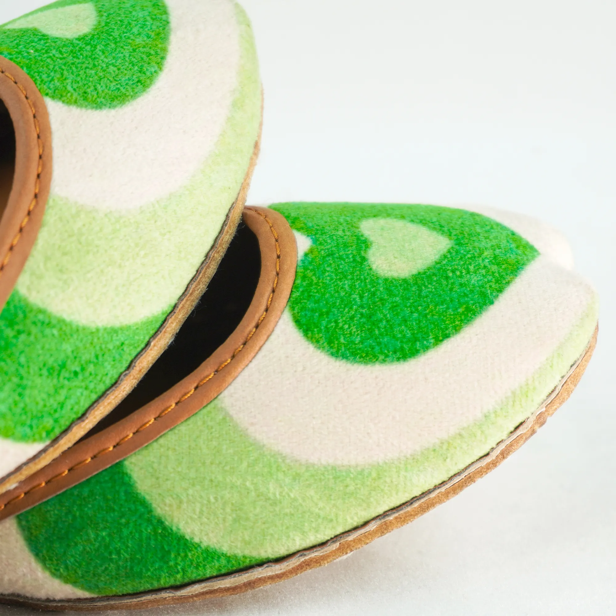 • Aesthetic: Features a refreshing green heart motif on a soft beige base, creating a playful yet graceful look.