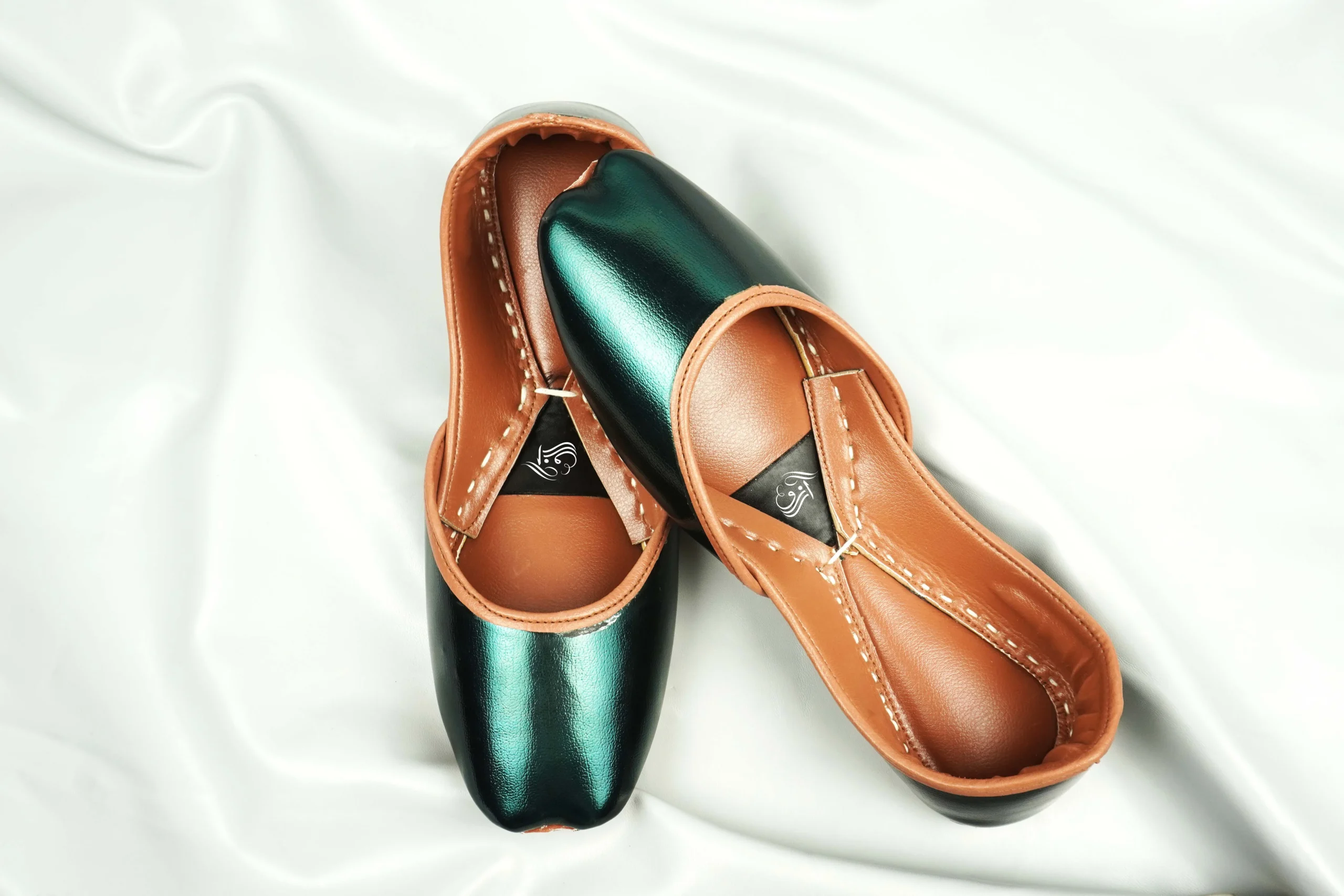 Step into timeless elegance with our Green Leather Khussa, blending contemporary flair with traditional artistry. The refreshing green tone symbolizes vitality and freshness, while the tan leather interior exudes sophistication. Perfectly versatile, it complements both modern and ethnic outfits, making it ideal for everyday wear or special occasions.