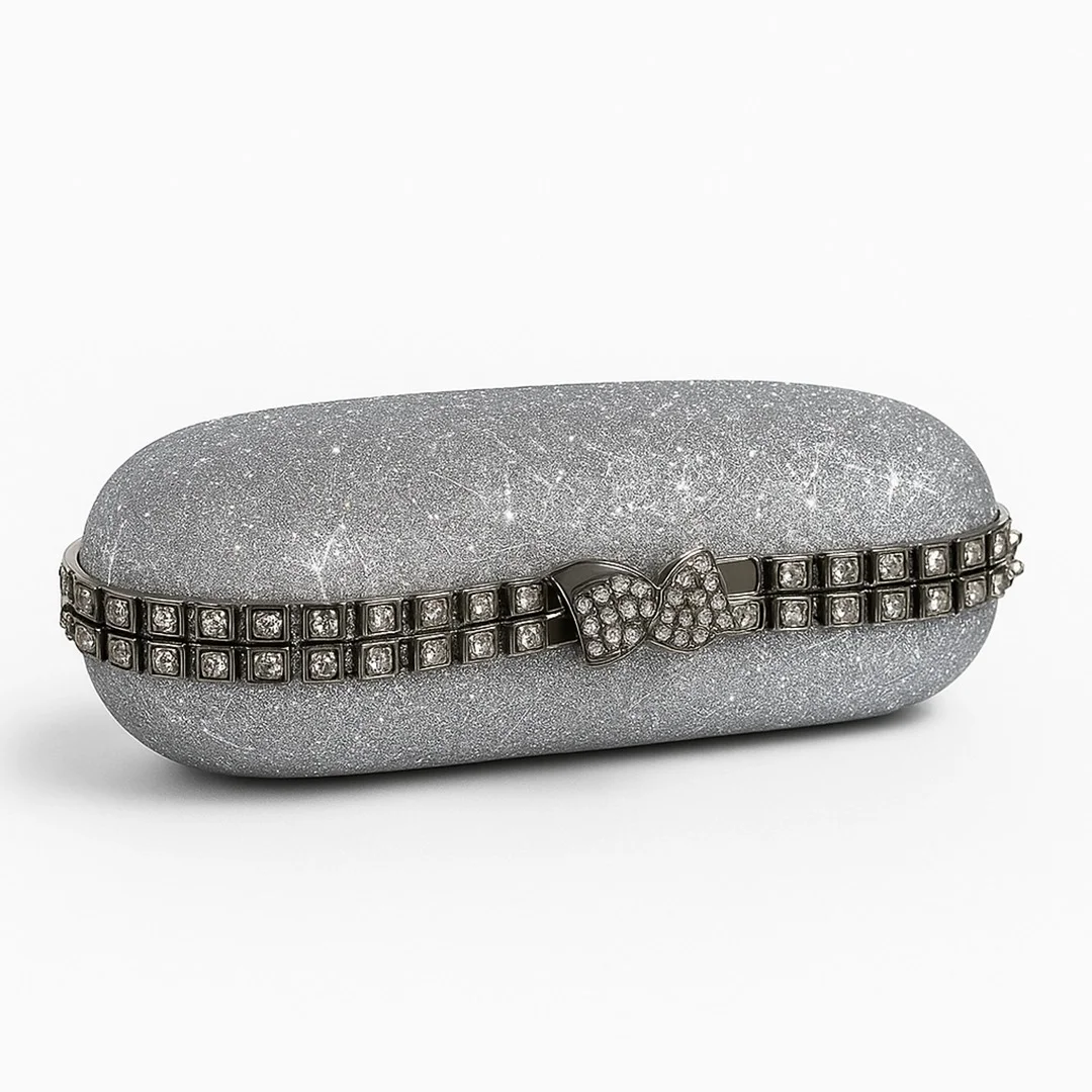 - Elegant silver clutch with a chic geometric texture